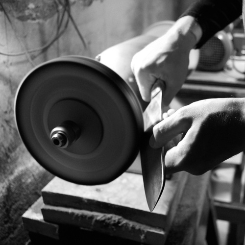 | Steel Quality Almost all factory knives are made of stainless steel. This makes it easier for uninformed or careless customers to keep the knife shiny but reduces the functionality of the steel as a fine blade. I work with only 52100 steel, and do all of the heat–treating by hand in order to maximize the potential of the material. |